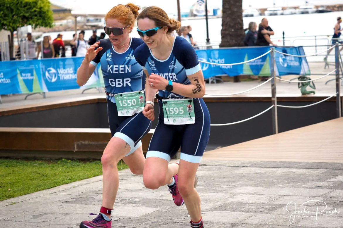 One lap along the coast this time and my legs felt heavy, I was looking forward to finishing and there was no chance of increasing the speed to catch up with other athletes in my group. As I turned the corner to head up to the finish, I could feel a woman on my right speeding up, the crowds were shouting, so I gave it my all and sprinted to the finish, just beating her.